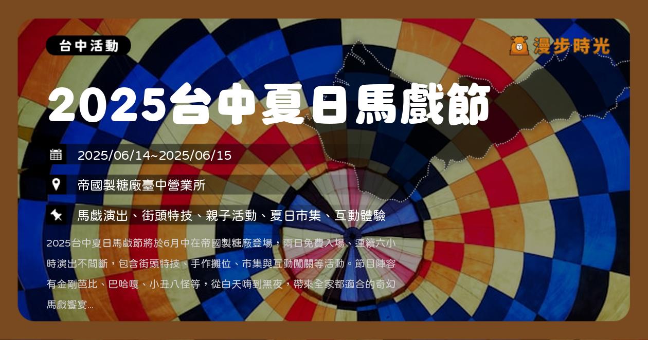 「2025台中耶誕聖誕節嘉年華」的時間為2025年12月12日~2026年01月01日,地點在舊台中火車站、柳川水岸、綠川水岸。本次活動以「台中珍甜_角伴耶誕」為主題,特別邀請日本人氣療癒系角色《角落小