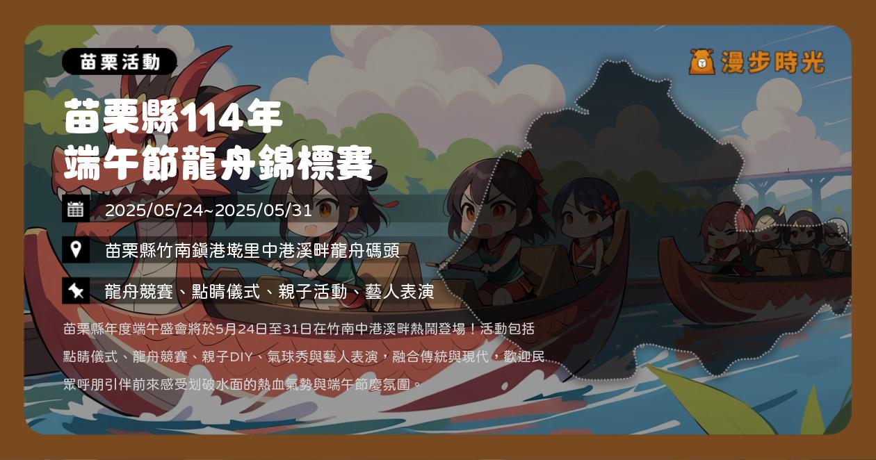 | 活動名稱 | 苗栗縣114年端午節龍舟錦標賽 |