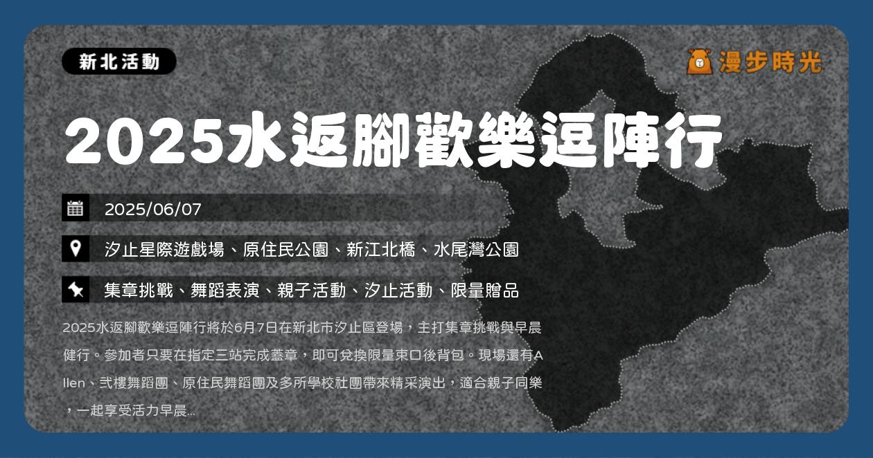 | 2025.06.07 | 2025.06.07 | 2025水返腳歡樂逗陣行 | 汐止星際遊戲場 原住民公園 新江北橋 水尾灣公園 |