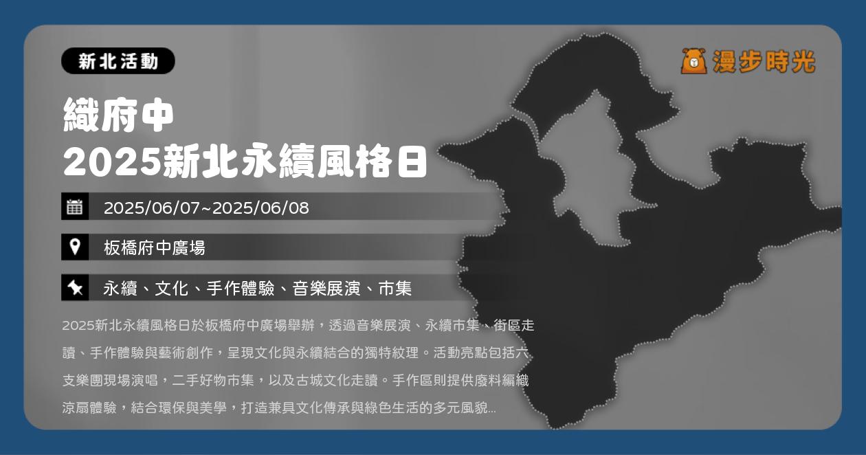 | 2025.06.07 | 2025.06.08 | 織府中 2025新北永續風格日 | 板橋府中廣場 |