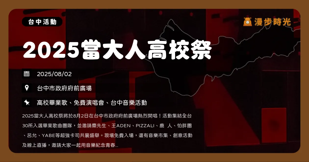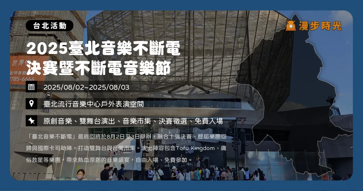 | 2025.08.23 | 2025.08.24 | 2025新北市河海音樂季 新北大都會公園舞台 | 新北大都會公園 |