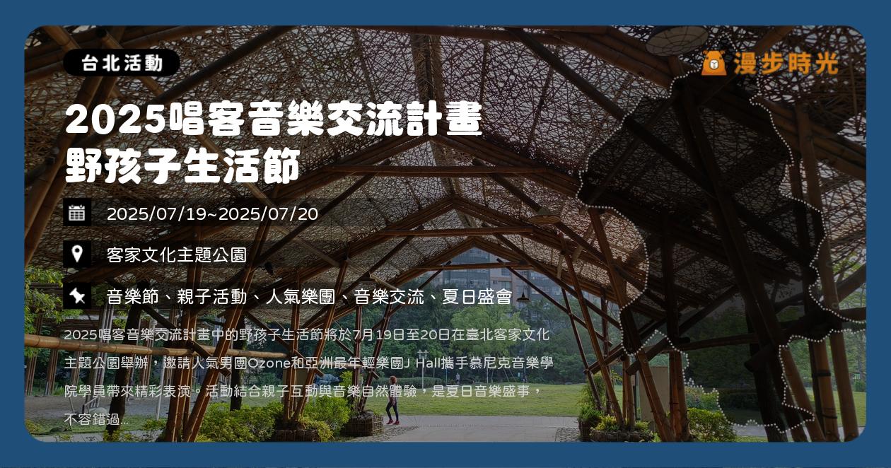| 2025.07.19 | 2025.07.20 | 2025唱客音樂交流計畫 野孩子生活節 | 台北市客家文化主題公園 |