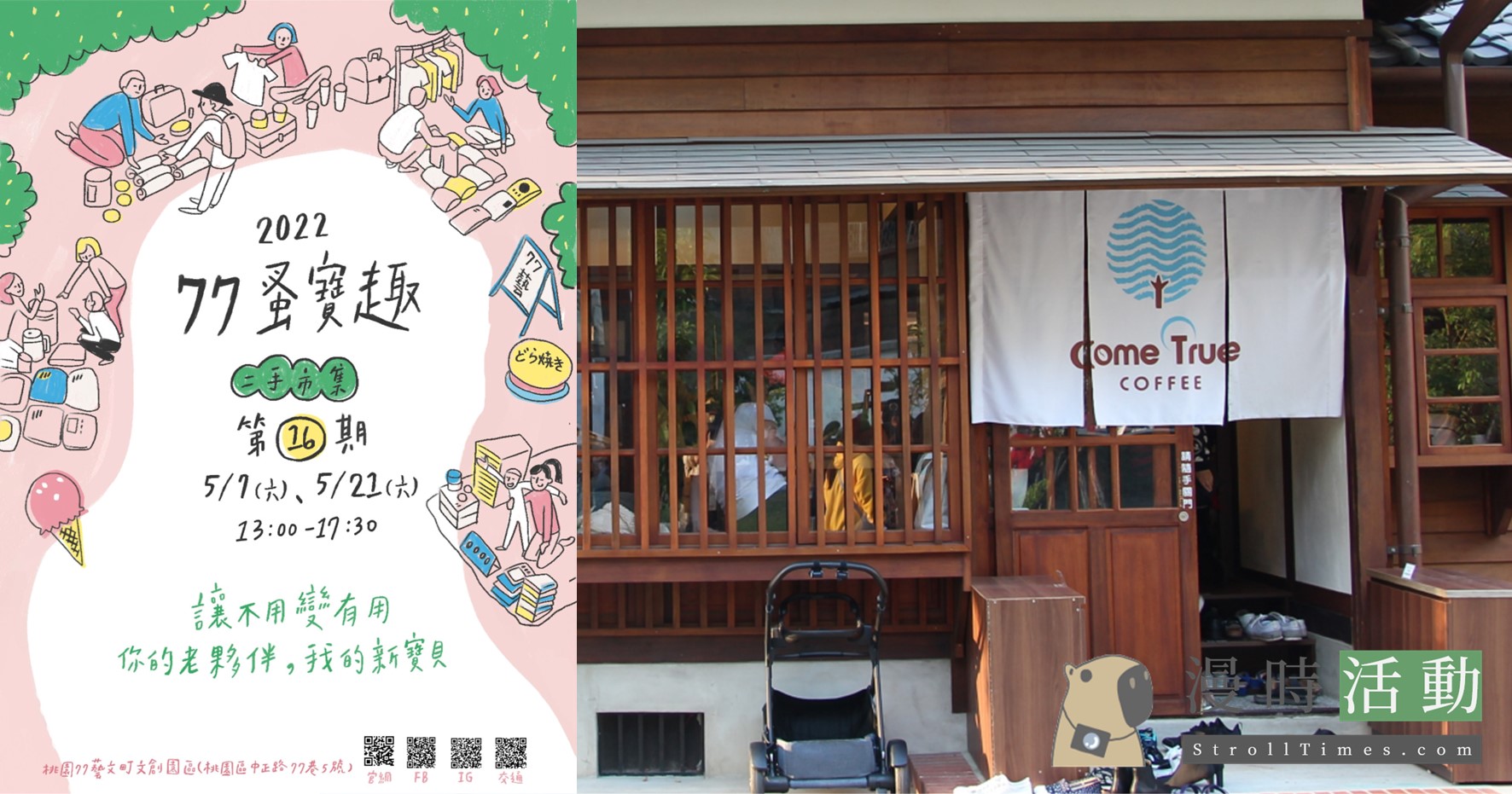 桃園77藝文町將於2022/5/7(六)和2022/5/21(六)舉辦77蚤寶趣二手市集(第16場),除了有二手市集外,還有街頭藝人表演,體驗人人當老闆,假日草地市集的交流。活動時間為13:00~17:30,市集地點在桃園77藝文町的露天草地。
