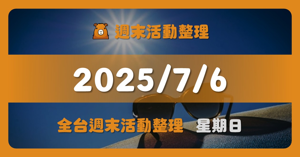 2025/7/6週日全台活動整理來了!本文整理了全台活動、展覽、市集等資訊。今日是國際接吻日:始於英國的非官方節日,該項節日旨在提醒人們享受接吻本身的樂趣。
