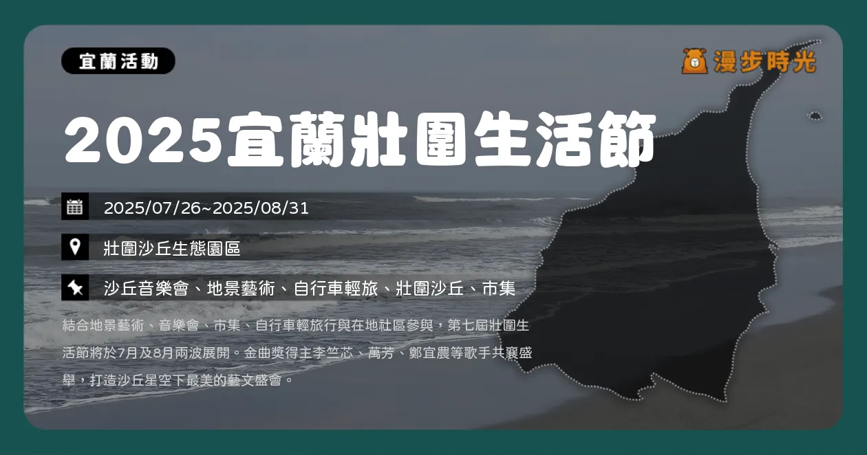 | 2025.07.26 | 2025.08.31 | 2025宜蘭壯圍生活節 | 壯圍沙丘生態園區 |